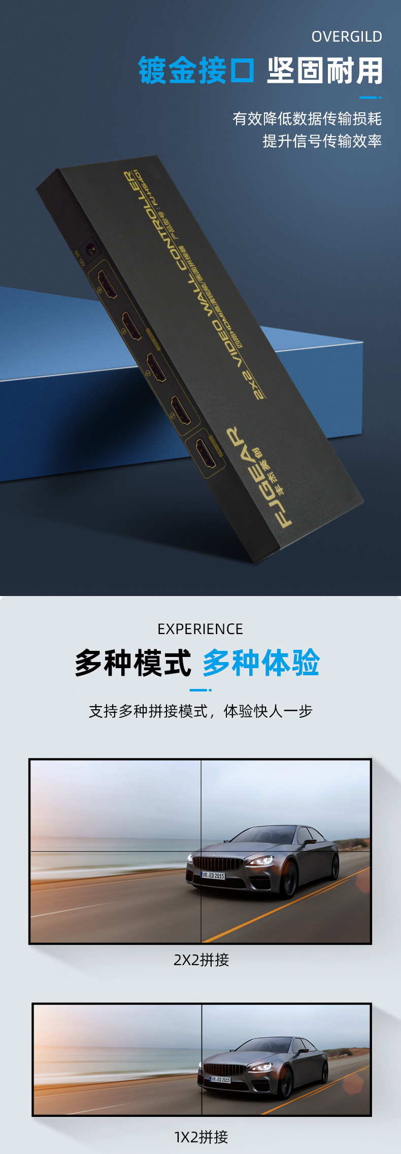 支持紅外/按鍵模式自由切換功能,常用2X2拼接模式,也可以切換1X1,1X2,2X1,2X2,3X1,1X3,1X4,4X1......