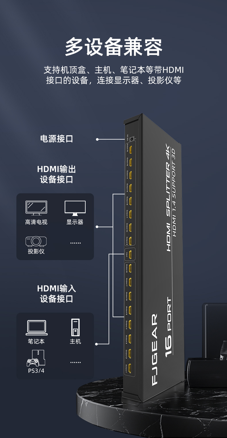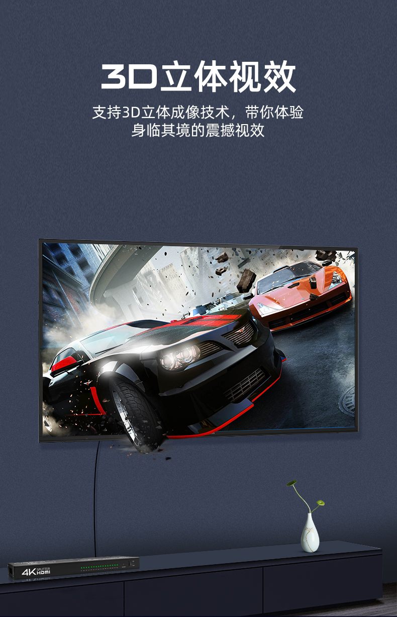 2.最高支持4K*2K@25/30Hz,向下兼容多種分辨率