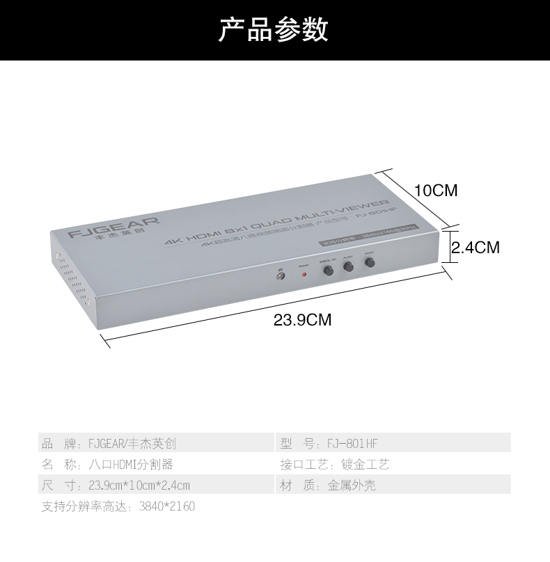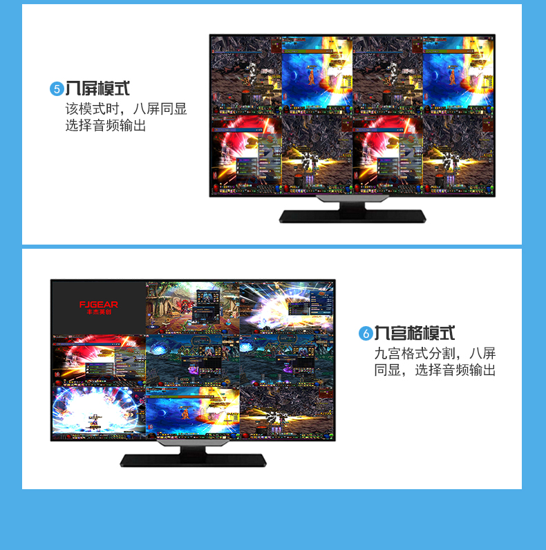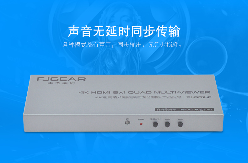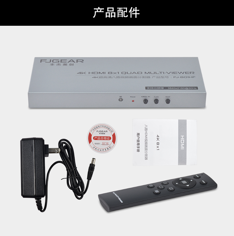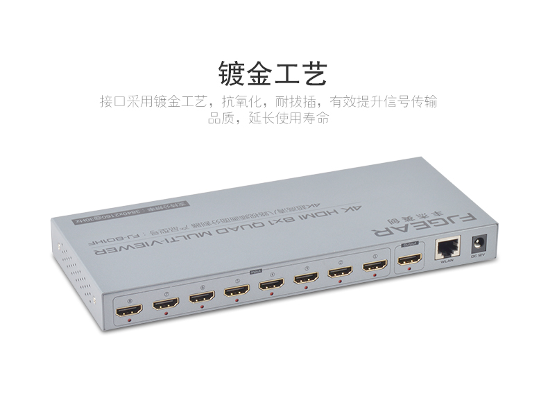 這是一款八路HDMI超清畫面分割器,它將八路HDMI信號以單獨(dú)或組合的形式顯示在同一個(gè)顯示器上面,可在分割器上自由控制