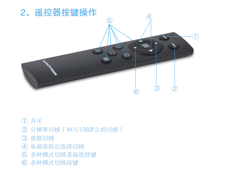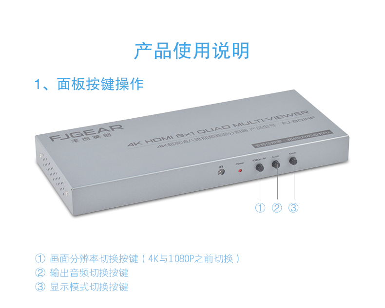 3.輸出分辨率(推薦):1920*1080@60Hz,3840*2160@30Hz