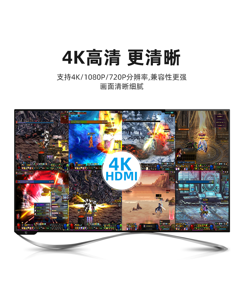 4.最大支持分辨率:3840*2160/30HZ 1920*1080/60HZ 1280*720/60HZ 向下兼容多種分辨率