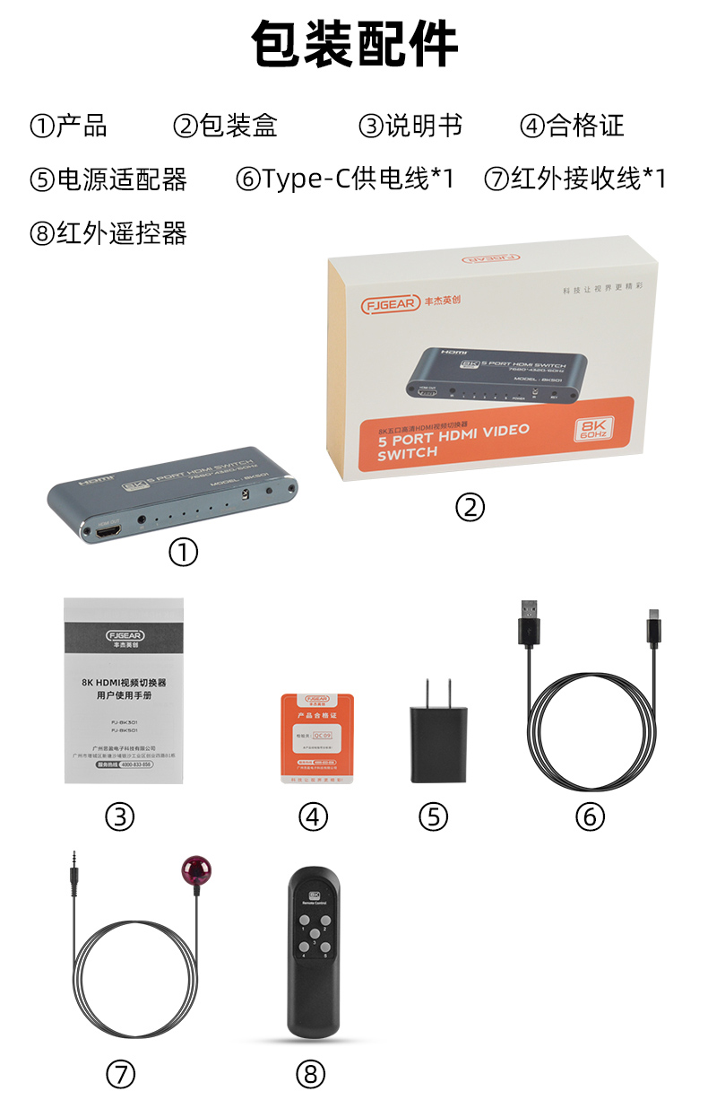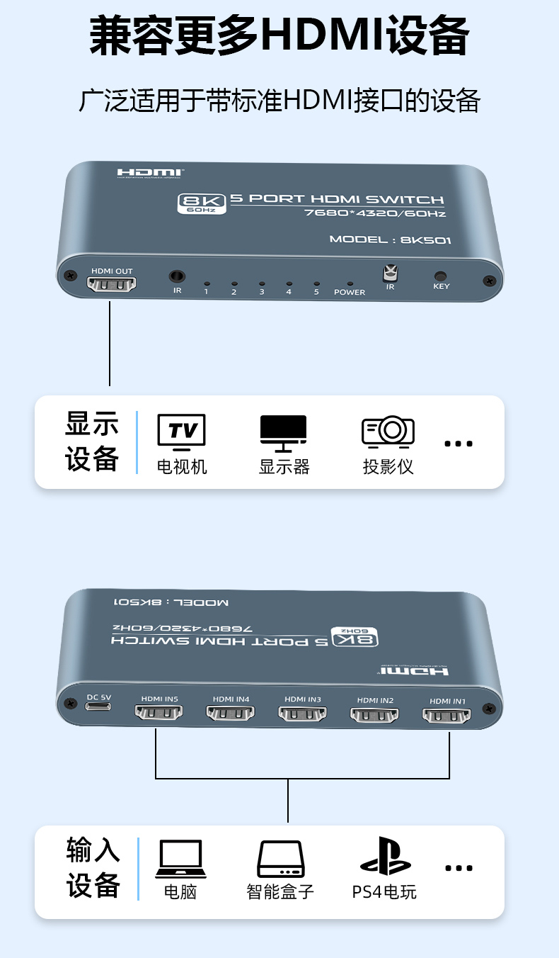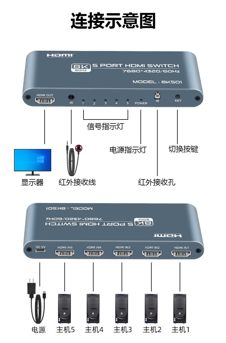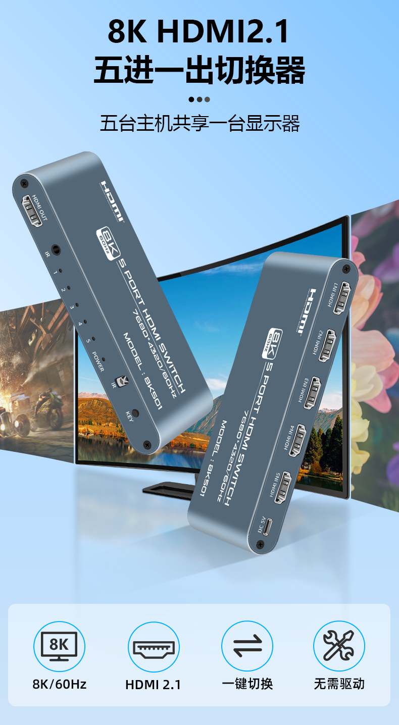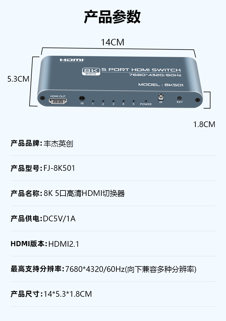 3.產(chǎn)品名稱:8K 5口高清HDMI切換器