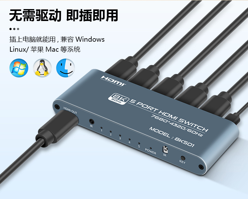 6.最高支持分辨率:7680*4320/60HZ(向下兼容多種分辨率)