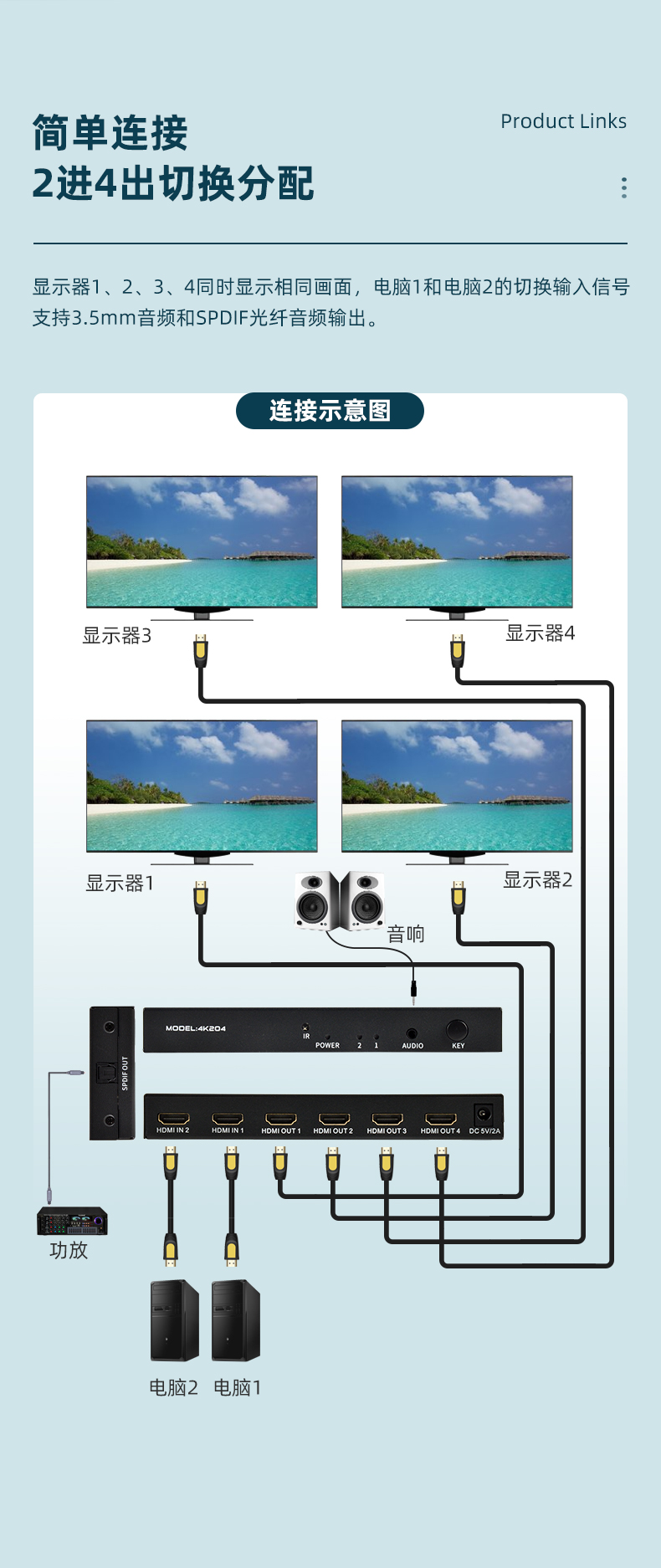 2.HDMI輸入/輸出線長(zhǎng):1-10米(視線材質(zhì)量而定)