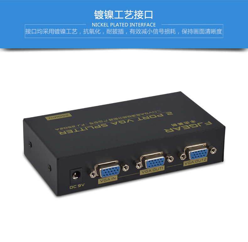 1:250MHz 系列VGA分配器是高清VGA信號分配器,適用于液晶電視機和投影儀等大屏幕顯示設備。具有長距離驅動功能