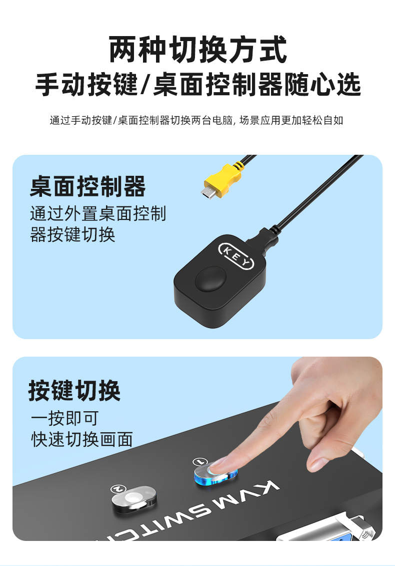 5.切換方式:手動(dòng)按鍵切換/桌面控制器切換