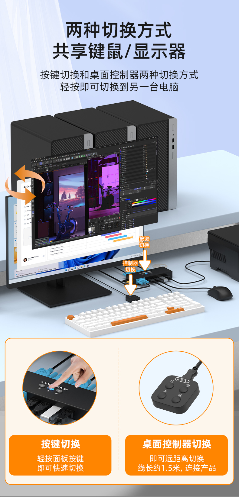 5.切換方式:面板按鍵切換/桌面控制器切換