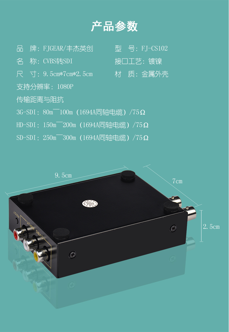 一路CVBS(AV)信號(hào)輸入,兩路SDI信號(hào)同時(shí)輸出,支持全高清SDI信號(hào)的輸出;操作簡(jiǎn)單易用,穩(wěn)定性和可靠性極高;