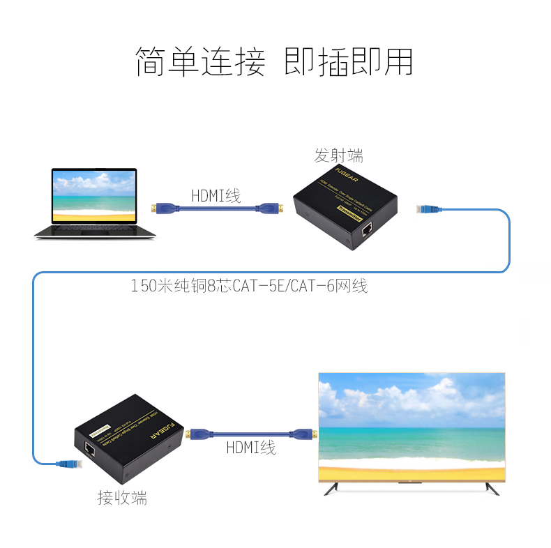 2.采用CAT-5E/6網(wǎng)線代替HDMI線來實(shí)現(xiàn)遠(yuǎn)距離傳輸