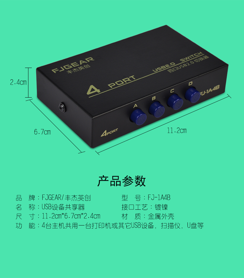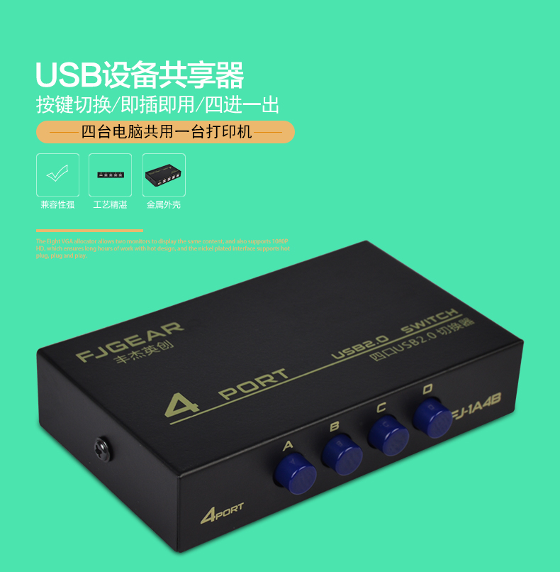 USB切換共享器是把多臺(tái)主機(jī)的USB共享為一個(gè)端口,支持所有USB打印設(shè)備,從而達(dá)到節(jié)省資源,方便工作的目的。