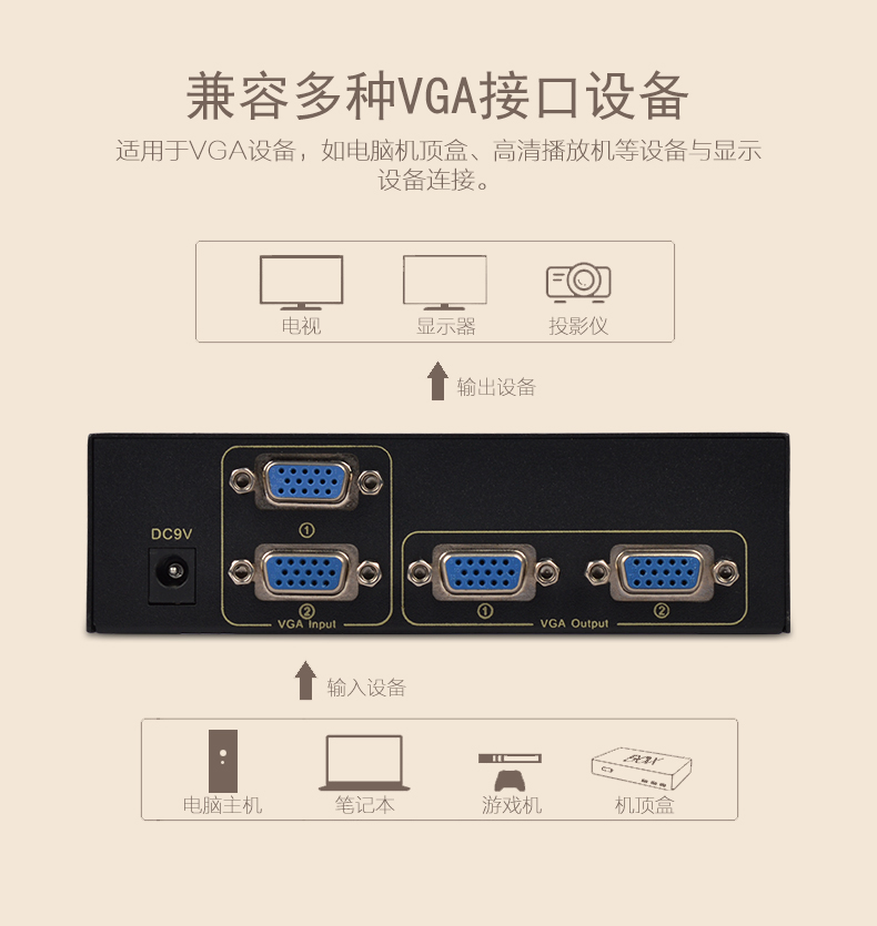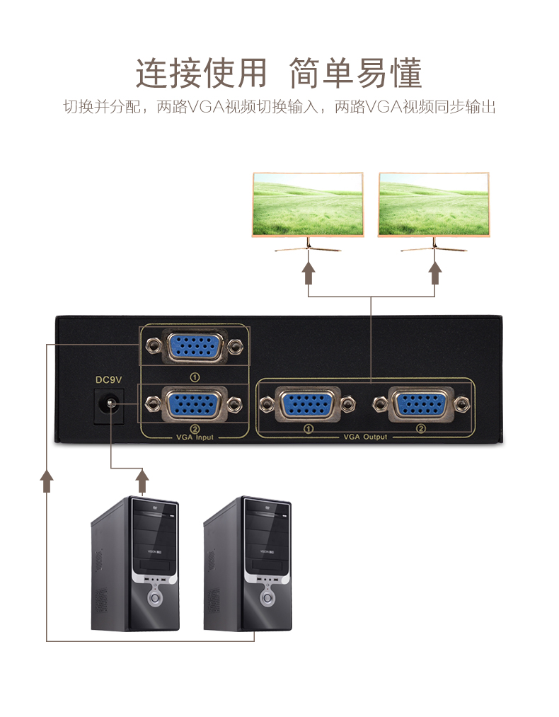 1、二路VGA信號輸入,二路VGA信號同步輸出;