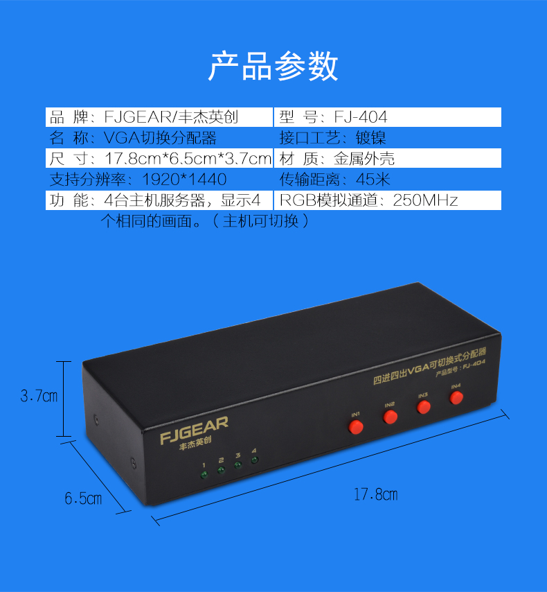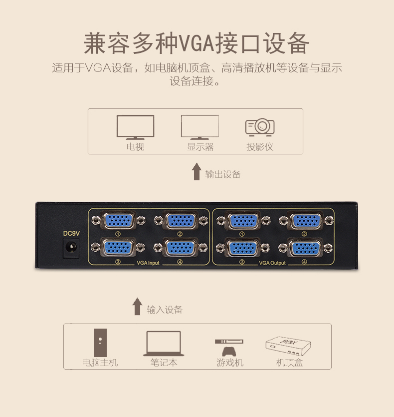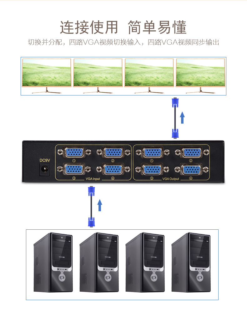 1、四路VGA信號輸入,四路VGA信號同步輸出;