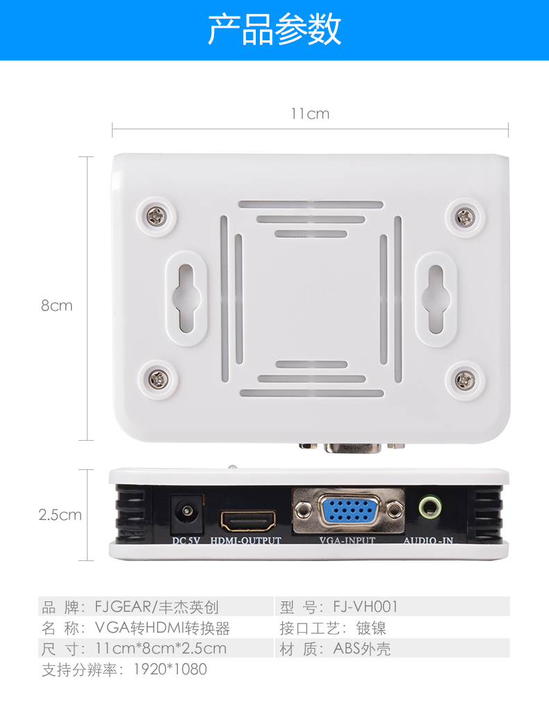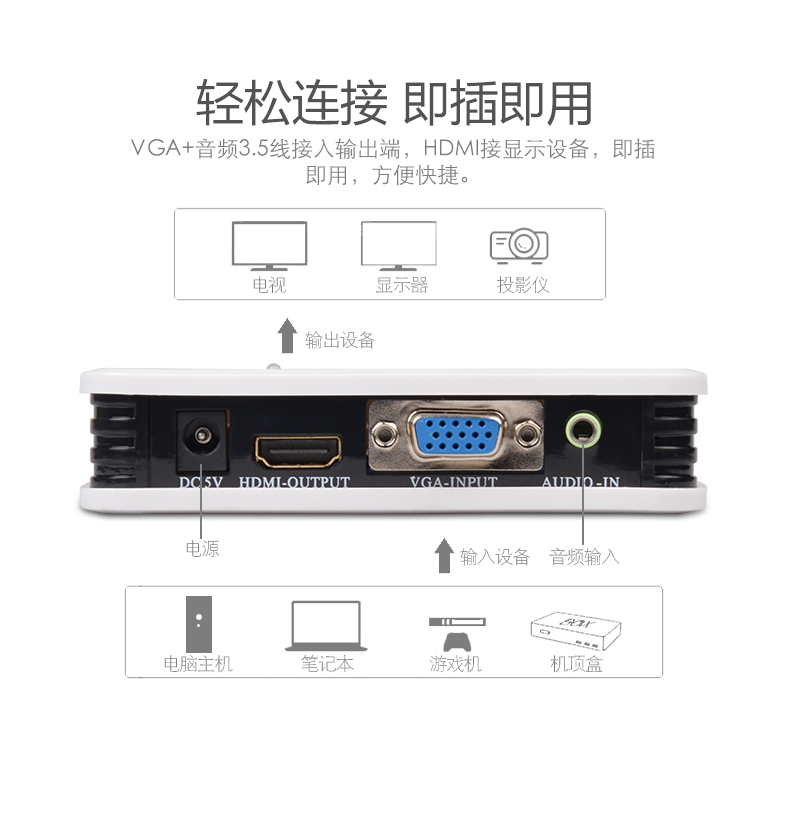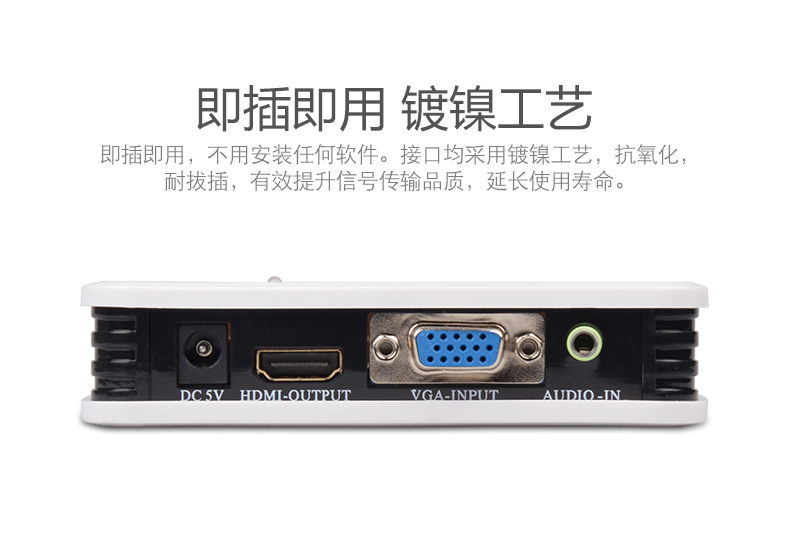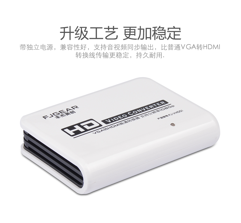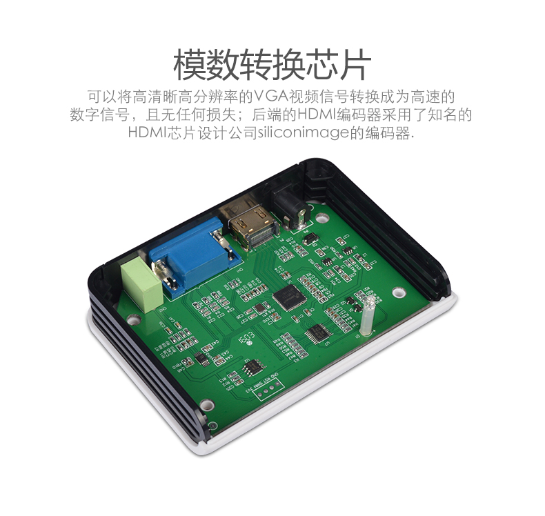 這是一款高清信號(hào)轉(zhuǎn)換器,通過(guò)智能芯片的處理,它可以將VGA模擬信號(hào)和AUDIO模擬信號(hào)轉(zhuǎn)換成一路HDMI信號(hào);產(chǎn)品廣泛運(yùn)用于臺(tái)式電腦/筆記本/DVD/機(jī)頂盒,播放器,攝像機(jī)等設(shè)備VGA信號(hào)源輸入,通過(guò)此轉(zhuǎn)換器連接后使高清電視,監(jiān)視器等顯示設(shè)備輸出hdmi高清視頻信號(hào),從而解決了用戶模擬轉(zhuǎn)數(shù)字的顯示設(shè)備諒解方案,給您帶來(lái)炒房的高清視覺(jué)盛宴。